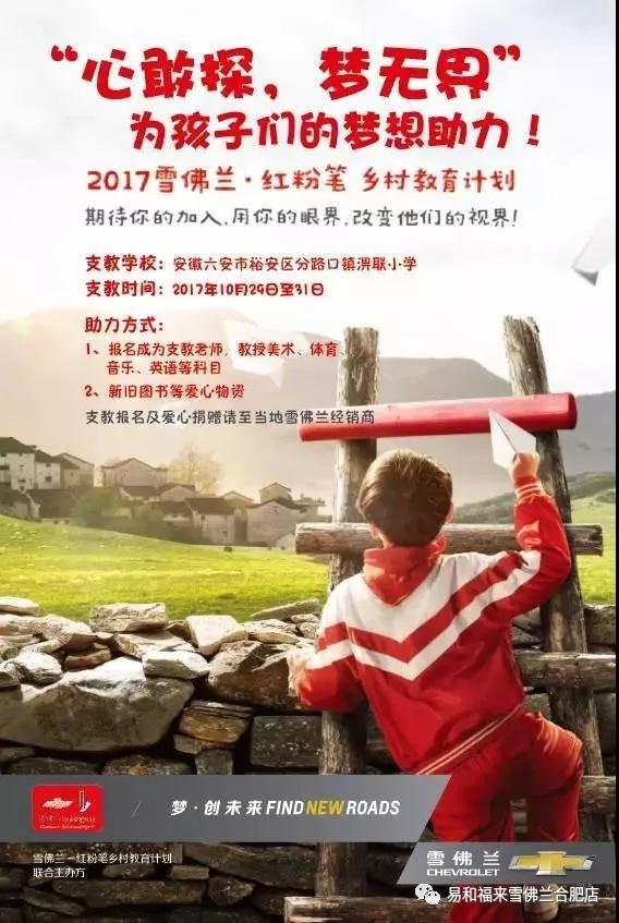 成為志愿者:如果您有教師資質(zhì),且精通體育、美術(shù)、英語、音樂,雪佛蘭4S店報名加入雪佛蘭志愿者隊伍,實際為孩子們授課,讓愛更深的扎根。